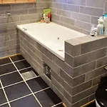 La villa incluye un cuarto de baño con bañera de hidromasaje, un inodoro separado y ducha.